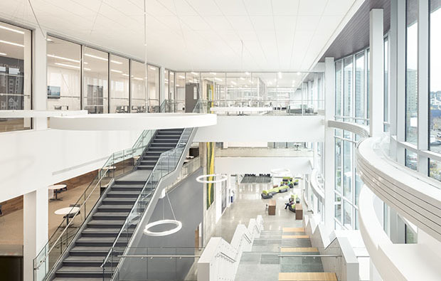 The building was recently awarded LEED® Gold and sustainable features include high-performance curtain walls, access to natural daylight and energy-efficient fixtures.
